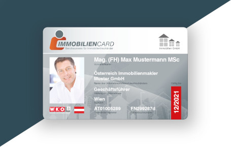 Auf immobiliencard.at findest du alle ImmobilienmaklerInnen mit Gewerbeberechtigung und alle befugten MitarbeiterInnen. Damit einzelne MitarbeiterInnen eine physische Karte zum Nachweis der Kenntnisse erhalten, müssen sie mindestens zertifizierter Immobilienmakler-Assistent sein. Auf der Immobiliencard stehen: